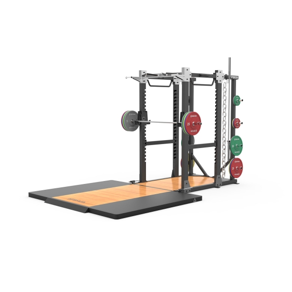 功能區:杠鈴片整組掛架、舉重桿保護架、單杠架、可調引體向上架、粗繩訓練器、彈力帶掛架
